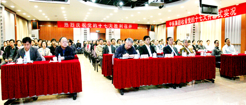雖然因為人員太多而略顯擁擠,但整個會場卻非常安靜,就連每逢會議難免嗡嗡作響的手機似乎也絕了聲。大家都在認真地傾聽,有的詳細地做著記錄,有的還時不時地將身子輕輕探起,生怕錯過電視里傳出的只言片語……10月15日上午,中核集團公司黨組成員、副總經理孫又奇,黨組成員王森,以及老領導趙宏、李忠良、錢福源等與集團公司總部、檔案館、金原鈾業公司、新聞宣傳中心、二二一局的干部職工一起收看了中共十七大開幕式的現場直播,聆聽了胡錦濤總書記所作的報告。