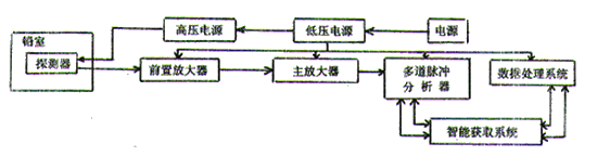 能譜數(shù)據(jù)獲取與處理系統(tǒng):由ADC智能獲取接口和計(jì)算機(jī)組成。探測(cè)器到ADC進(jìn)行模—數(shù)轉(zhuǎn)換,智能獲取接口對(duì)ADC的每個(gè)復(fù)換碼進(jìn)行實(shí)時(shí)處理、顯示、數(shù)據(jù)壓縮,并每隔一定時(shí)間將已壓縮的數(shù)據(jù)由接口傳送至計(jì)算機(jī),已進(jìn)行譜顯示的更新,每個(gè)譜的長(zhǎng)度、寬度、停機(jī)方式和條件,起、停都由計(jì)算機(jī)獨(dú)立控制。在測(cè)量過(guò)程中,計(jì)算機(jī)可以停機(jī)或處理其它數(shù)據(jù)。