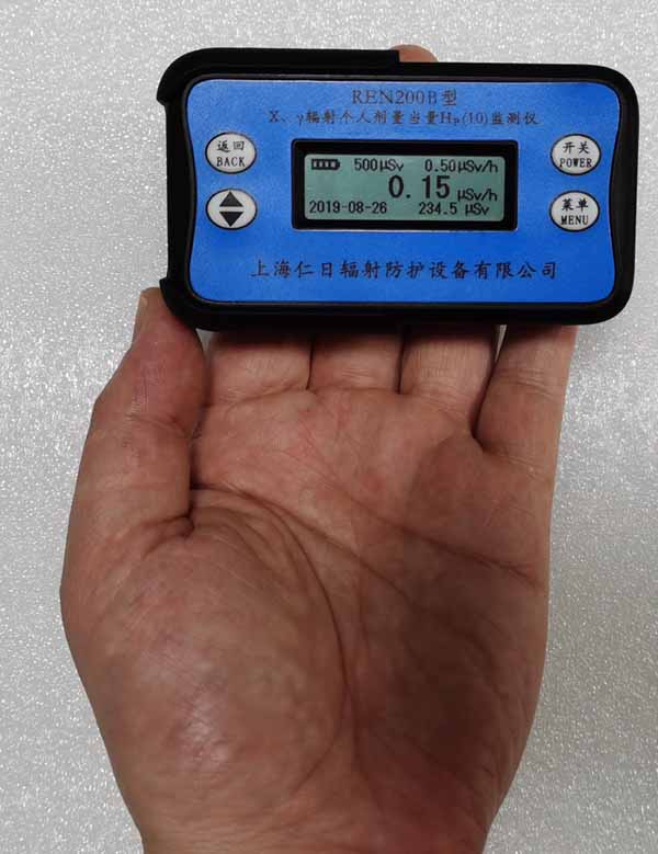 REN200B型X、γ輻射個人劑量當量HP(10)監(jiān)測儀(簡稱:個人劑量報警儀)內置高量程蓋格計數(shù)管為探測器,主要用來監(jiān)測各種放射性工作場所的X、γ以及硬β射線的輻射,具有較寬的測量范圍。能顯示工作場所的劑量當量率和累積劑量,更換電池時,日期及累積數(shù)據(jù)能永久保存。可選配RenRiPersonal個人劑量管理軟件,該軟件可存儲多個人的歷史數(shù)據(jù),能記錄日累積、月累積、年累積、輻照時長、計算平均劑量率、扣除或不扣除本底輻射,且以文字和圖譜的方式展現(xiàn)數(shù)據(jù)。廣泛應用于核電站、加速器、鋼鐵、化工、同位素應用、工業(yè)X、γ無損探傷、放射醫(yī)療、鈷源治療、γ輻照、放射性實驗室、核設施周圍環(huán)境監(jiān)測等領域中的工作人員進行個人安全防護監(jiān)測及放射性提示。